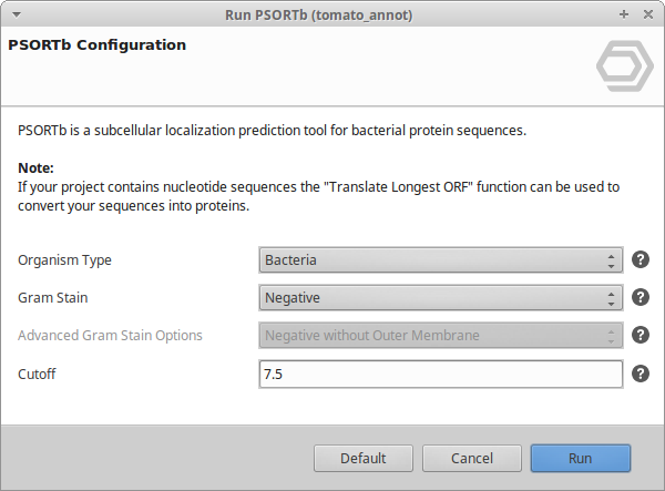 Figure 2. PSORTb wizard where the user can adjust the parameters.