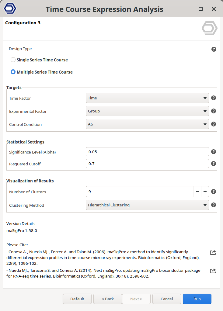 Number of Clusters: Establish a number of clusters to group genes by similar expression profiles.