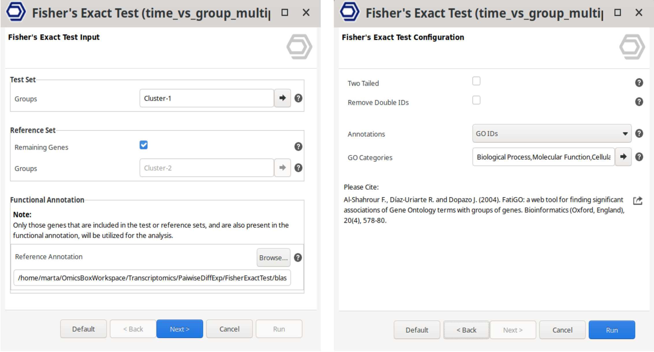 Figure 10: Fisher’s Exact Test wizard from timecourse results.
