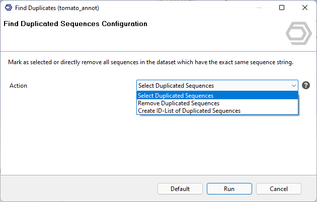 It is possible to select mark as selected or directly remove or Create an ID-List of all sequences in the dataset which have the exact same sequence string.
