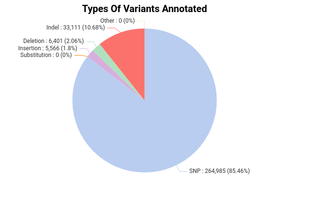 - Type of Variation Distribution in a pie chart in order to have a quick outline of the annotated variants.