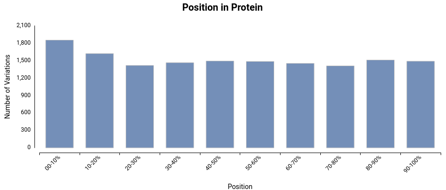 - Position in Protein: this histogram should also be even, as that will mean that variants that are in coding regions distribute equally.
