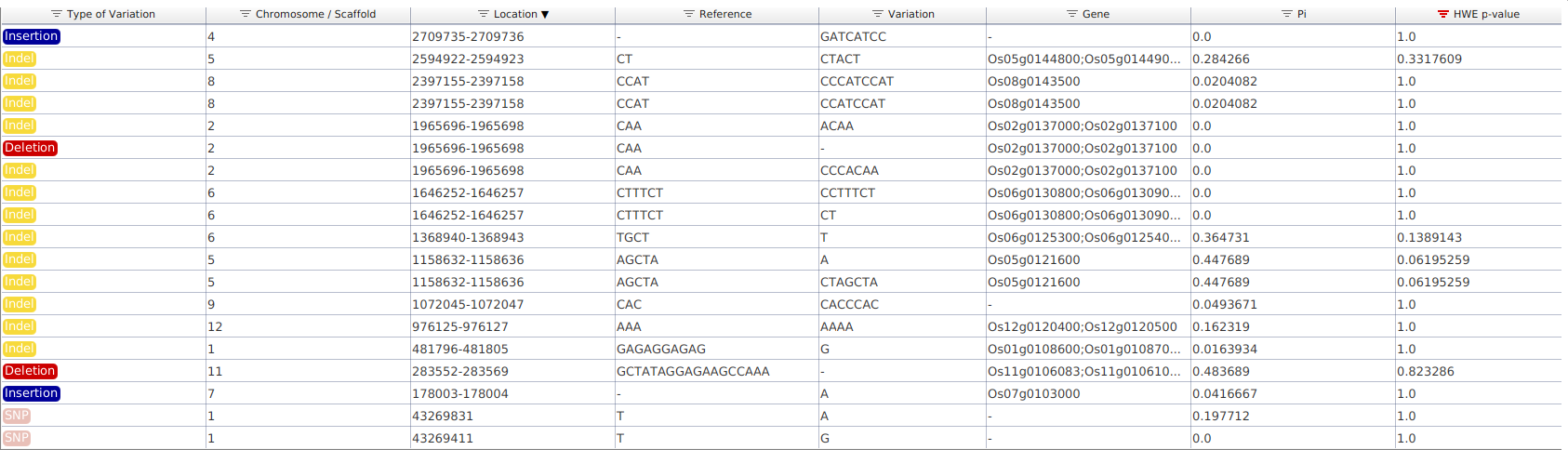 - HWE p-value: reports a p-value for each site from a Hardy-Weinberg Equilibrium test. The Hardy-Weinberg equilibrium is a theoretical state in which the frequency of alleles and genotypes in a population remains constant from generation to generation in the absence of any genetic or environmental influences that can affect the distribution of alleles.