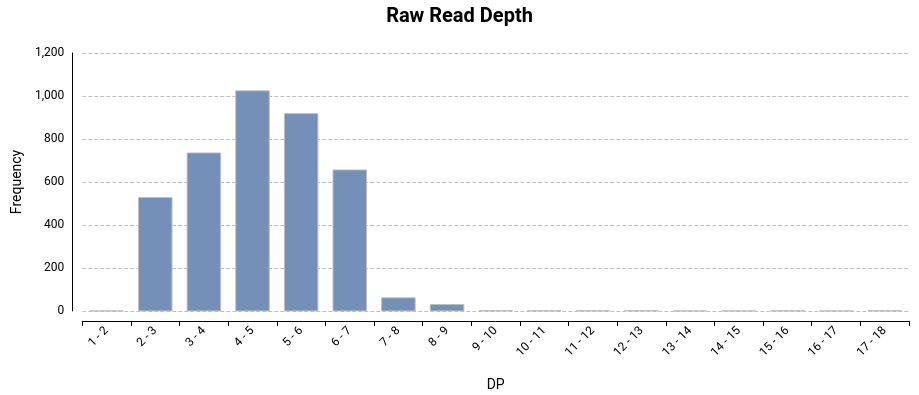 Depth Histogram: In Freebayes, Depth (the DP field) means the total read depth at the locus, that is to say, the number of times that site was read, but not necessarily that variant (also the reference nucleotide, or other variants).