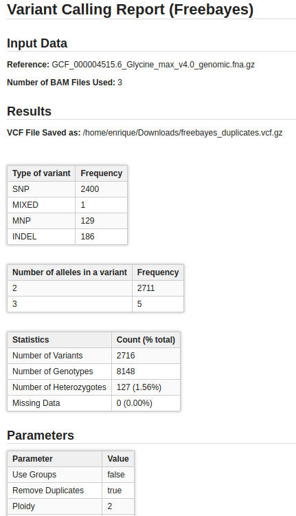 Figure 6. Freebayes Summary Report