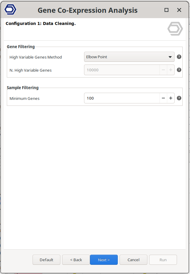 - Minimum Genes. Defines the minimum number of expressed genes required for a sample to be included in the analysis. A gene is considered expressed if its expression value is greater than zero. Samples not meeting this threshold are removed.