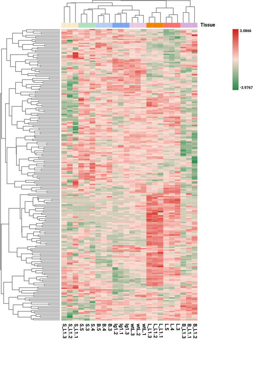 Figure 12. Heatmap showing transformed gene (rows) expression values across samples (columns).