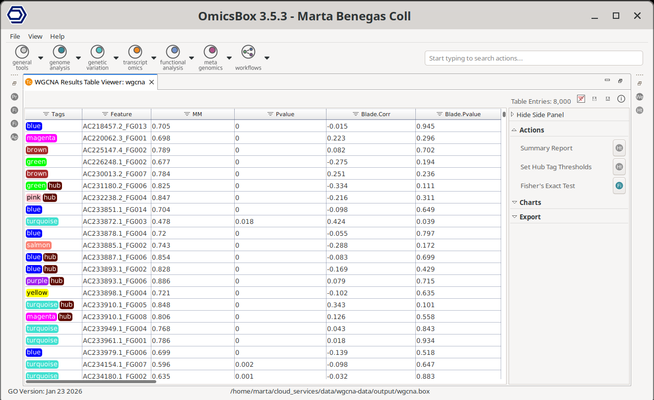 Apart from the generic Context Menu options, the WGCNA results have the specific tools explained below.